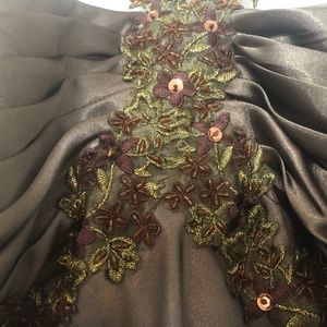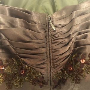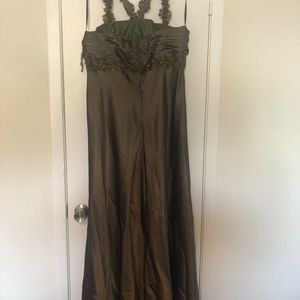 Lovely olive green formal with brown accents from Dress Barn’s Woman Collection ! New, never worn. Tags intact! Would make a beautiful holiday formal, prom, or military ball gown.