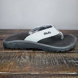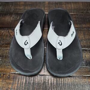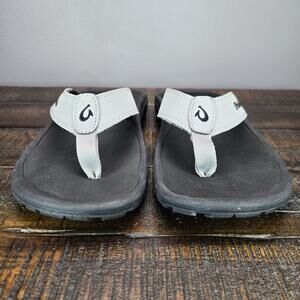 NEW OluKai Ohana Mens Size 7 Slip On Flip Flops Beach Sandals Foam Gray Black