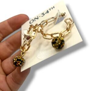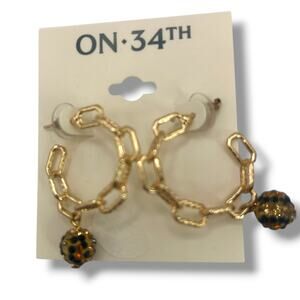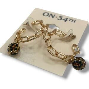 NEW On 34th Earrings Gold Hoops Leopard Pave Ball Chain Link Drop Cheetah
