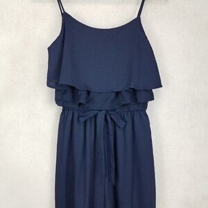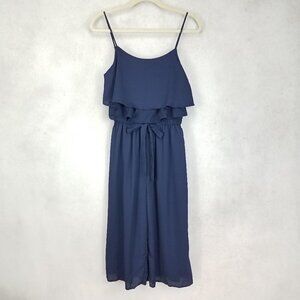 NEW One Clothing Size S Sleeveless Ruffle Pant Jumpsuit Cropped Wide Leg in Navy Blue NWT $44