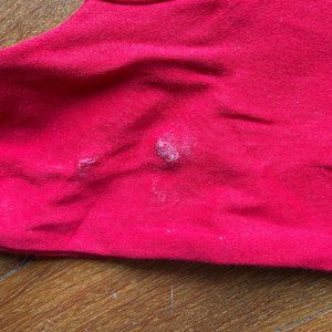 Priced low because there are some marks on the back from some candy (?) that slightly melted onto it (see picture). I'm sure it will wash out, but didn't want to remove the tags.