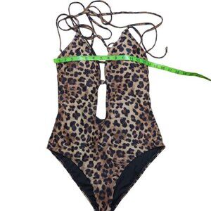 NEW One Piece Plunge Strappy Criss Cross Tie Leopard Print Swimsuit Women's L