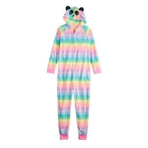 NEW One-Piece Pajamas Fleece Size M (8) Blanket Sleeper Union Suit Hooded Panda