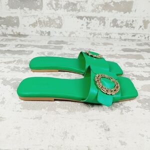 NEW Open Edit Lely Green Square Toe Slide Sandals I648