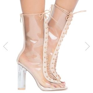 NEW Open Toe Chunky Clear Heel Lace Up Ankle Boot