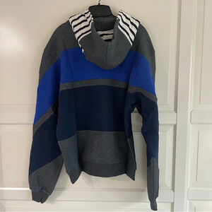 Opening Ceremony mens gray and blue hooded sweatshirt with striped interior hood. New with tags.