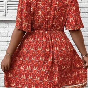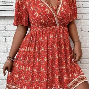 *NEW* Orange Red Floral Boho Women's Dress | Size 2X
