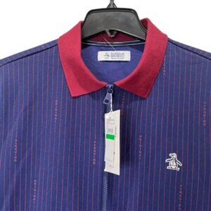 NEW Original Penguin Munsingwear Blue Pinstriped Golf Zip Up Jacket Mens Large