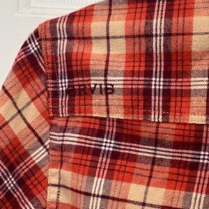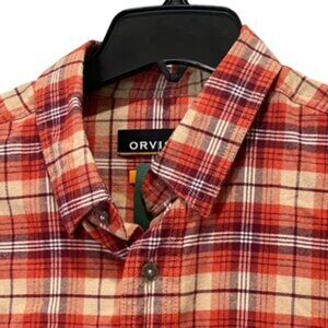 NEW Orvis Plaid Flannel Button Up Shirt Contrast Cuffs Men’s Shirt Size Medium