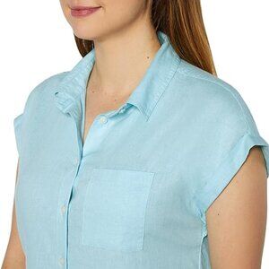 NEW Orvis Short Sleeve Rolled Cuffed Tacked Solid Front Linen Blend Shirt Top 14