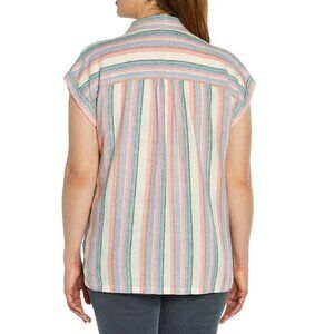 NEW Orvis Short Sleeve Rolled Cuffed Tacked Stripes Front Linen Blend Shirt 6 8