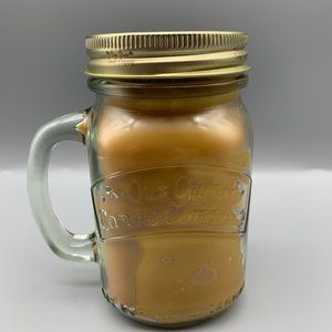 This is a brand new candle in a jar. Made in the USA. Burns up to 100 hours. Lead free wick. Glass jar with handle. Metal screw on lid. Scent is- Hot Buns (cinnamon) and is 13 ounces. Very nice scent for anywhere in your home.