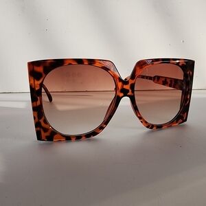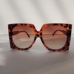 Beautiful oversize square sunglasses. Retro design. Tortoise frame and brown gradient lens.