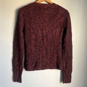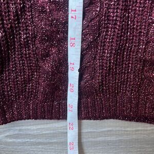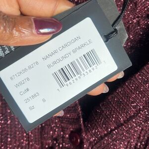NEW PAIGE Nanari Metallic Cable Knit V-Neck Cardigan in Burgundy Sparkle