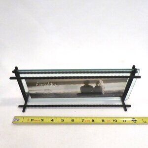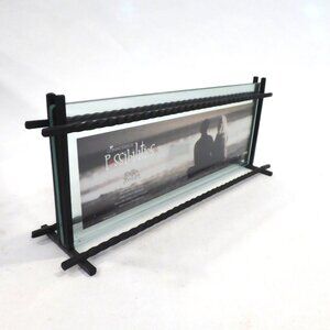 New, never used for its purpose, Connoisseur Possibilities brand, glass frame with black twisting metal accents photo frame for a panoramic image. Holds a 10” x 3” photo. (See photos for details) I am the original owner. It has been in climate controlled storage since acquired. Comes from a pet and smoke free home.
