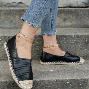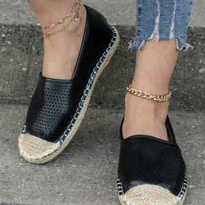 Take on the day in bohemian style with these espadrilles featuring a perforated outer for a breathable feel and visual texture.