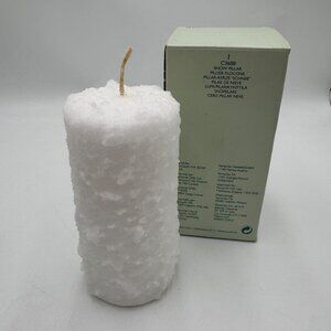Elegant and rare Partylite white snow pillar candle, perfect for creating a cozy winter ambiance. This 6" x 3" candle comes new in its original box, making it an ideal gift or addition to your home decor.