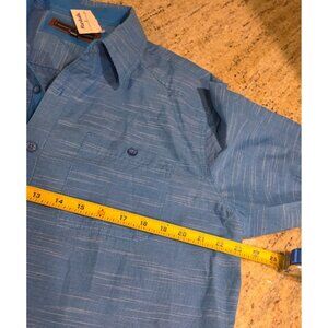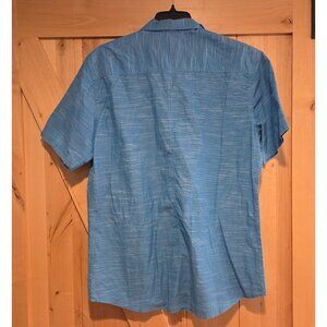 NEW! PD&C Shirt Mens Size L Blue Stripe Cotton Button Up Collared Short Sleeve