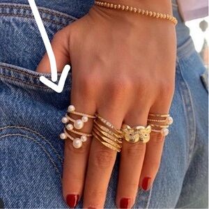Features a four-stone setting that mimics the rich luster of real pearls.
