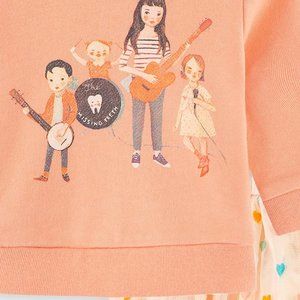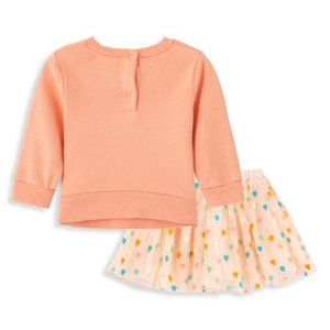 NEW PEEK Baby Peek x Dreamworld 2 Pcs Set Peach Band Sweatshirt Mesh Heart Skirt