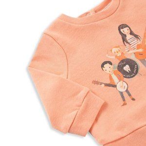 Pullover with group band with instruments graphic print - guitar, banjo, drums, singer