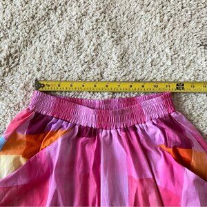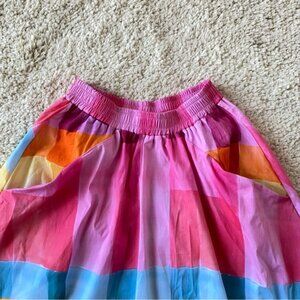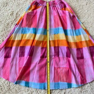 Pockets, Elastic waistband, Midi skirt, “A” line style, Lined.