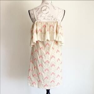 NEW PEPIN Zadie Ruffle Off Shoulder Tank TOP Cream Pink Chevron Eyelet Dress 2