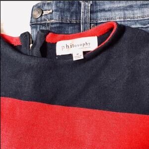 NEW PHILOSOPHY Short Sleeve Red Navy Blue Wide Striped Zipper Back Sweater M