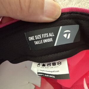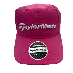The NEW Pink TaylorMade Performance Strapback Baseball Cap is a stylish and versatile accessory for both men and women. Made from durable cotton fabric with a twill weave, this one-size hat features a solid pink color and an adjustable strap for a comfortable fit. The classic baseball cap style adds a touch of sporty flair to any outfit, making it a must-have addition to your wardrobe. Perfect for casual wear during everyday activities or for showing support at a baseball game.