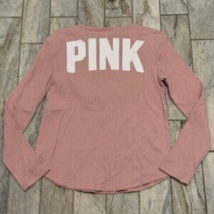PINK Victoria's Secret Women's Small pink/white long sleeve thermal-look shirt.