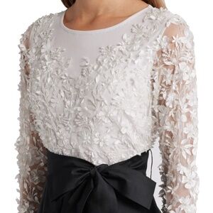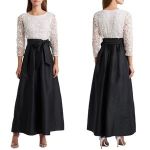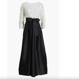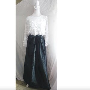 NEW PISARRO NIGHTS Black & White 3D FLORAL BODICE Beaded TAFFETA Evening GOWN 18