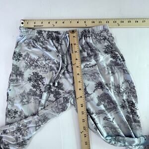 NEW PJ Lounge Pants Womens Sz S Blue Black Floral Trees House Wagon Country