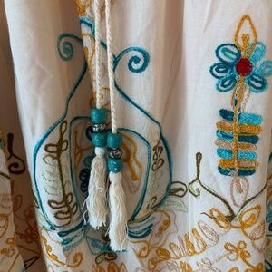 Embroidered Boho Peasant Blouse. Long drawstring with beads and tassels.