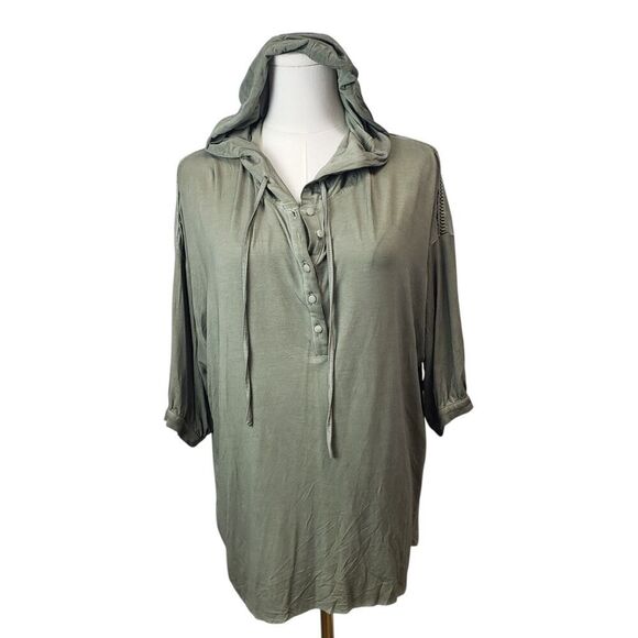 Keywords: POL tunic hoodie lace boho oversized relaxed casual green stretch knit lightweight soft