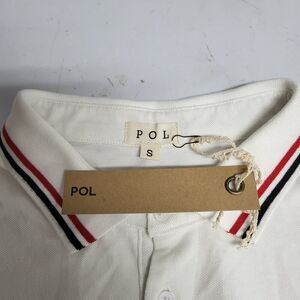 NEW POL Woman's Small White Cotton Short Sleeve Polo Shirt Red Black Stripe Trim
