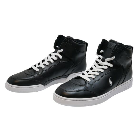 NEW POLO RALPH LAUREN COURT LEATHER HIGH TOP BLACK SNEAKER SHOES MENS SIZE - 10
