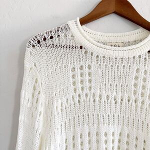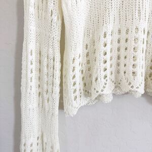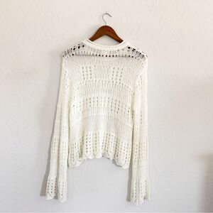 NEW POL Open Weave Crochet Knit Bell Sleeve Sweater in Cream Off White Size S