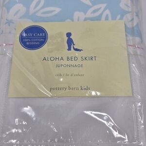 NEW POTTERY BARN KIDS CRIB ALOHA BED SKIRT DUST RUFFLE COTTON RARE BLUE FLORAL