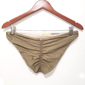 NEW!! PQ Swim SIZE L Haven Wave Gold Ruched Bikini Full Bottoms Divine HAV 2655