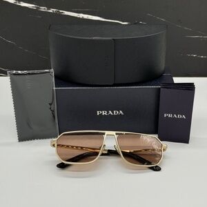 NEW PR A53S VAF10D PRADA GOLD BROWN PILOT SPR A53 VAF10D MEN SUNGLASSES