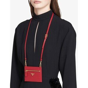 NEW PRADA Prada Shoulder Strap Cardholder Red Leather 100% Authentic