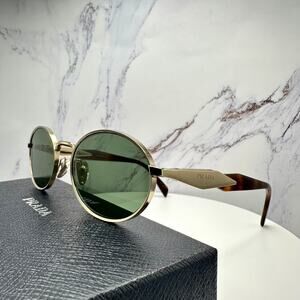 PRADA Sunglasses NEW - 100% Authentic! AUTHENTICITY GUARANTEED 100% ORIGINAL and BRAND NEW PRADA Sunglasses NEW - 100% Authentic! Sale Includes: Prada Box, Prada Hard Case, Prada Care Material, Prada Polish Cloth Item Details * Brand: Prada * Condition: Brand New Prada Sunglasses - 100% Authentic * Gold Metal Frame * Oval Full Rim * Gold Metal & Brown Tortoise Acetate Arms * PRADA MILANO Symbole Logo on both sides * Green Lens * PRADA Logo Engraved in the lens * Unique Serial Number etched to confirm authenticity * Made In Italy * Unisex Eyewear * Measurements: Lens/Bridge/Temple (mm): 55-20-140 100% Authentic - 100% Positive Feedback - Trusted Seller! Great Gift - Designer Discounted Eyewear Deals - Sales! 809