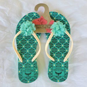 NEW PRETTY YOU London Turquoise Thong Flip Flops Sandals XL 9.5/10.5