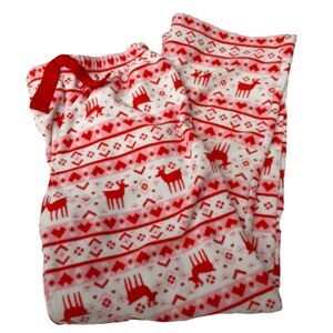 Soft cuddly PJ pants of brushed fleece in a classic holiday red and white Scandinavian pattern. While perfect for Chriatmas, they't not specifically a holiday pattern, just a winter print. Essential for that