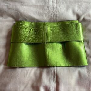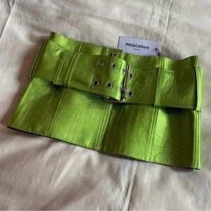 NEW! PRISCAVERA- Low-Rise Mini Belt Skirt in Wasabi Metallic Green Size Small Leather Micro