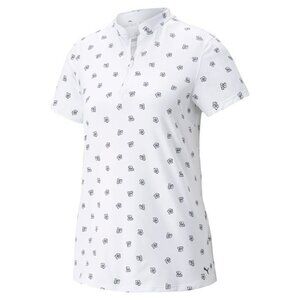 NEW PUMA Women's LARGE MATTR Hibiscus Floral Golf Polo Shirt WHITE