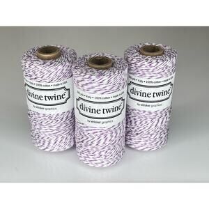NEW Pack (3) Divine Twine 100% Cotton 240 Yards, 4 PLY Purple White Stripe Bakers Twine String - NEW In Package!