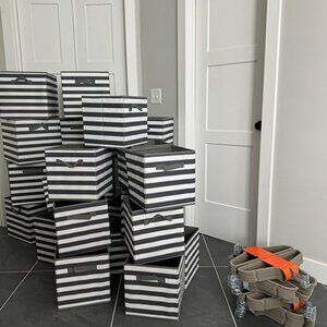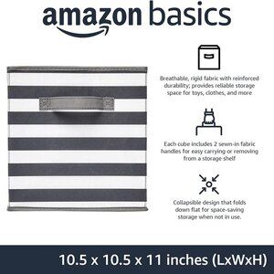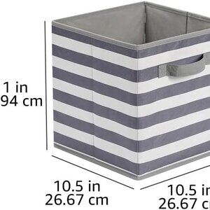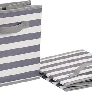 INCLUDES: 6 collapsible storage cubes in White/ Light Grey Stripe for storing, organizing, and reducing clutter