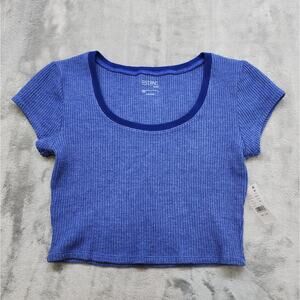 NEW Pacsun Est. PAC 1980 Samantha Cropped Waffle Knit T-Shirt Size S Blue Stretch
