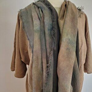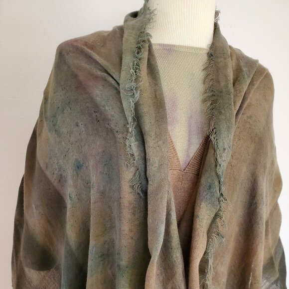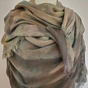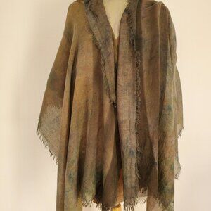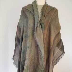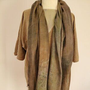 NEW Painted dyed silk cashmere scarf wrap beige black brown tan green gray blue